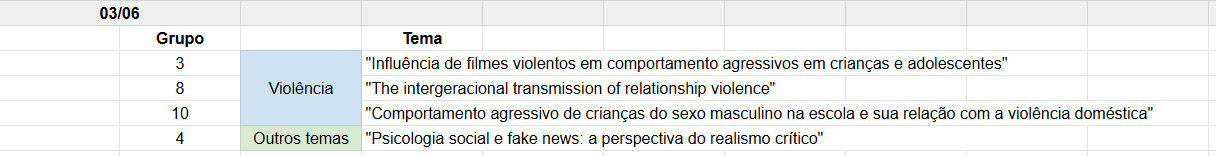 03/jun - Apresentação Seminários: Temas contemporâneos em Psicologia da Aprendizagem